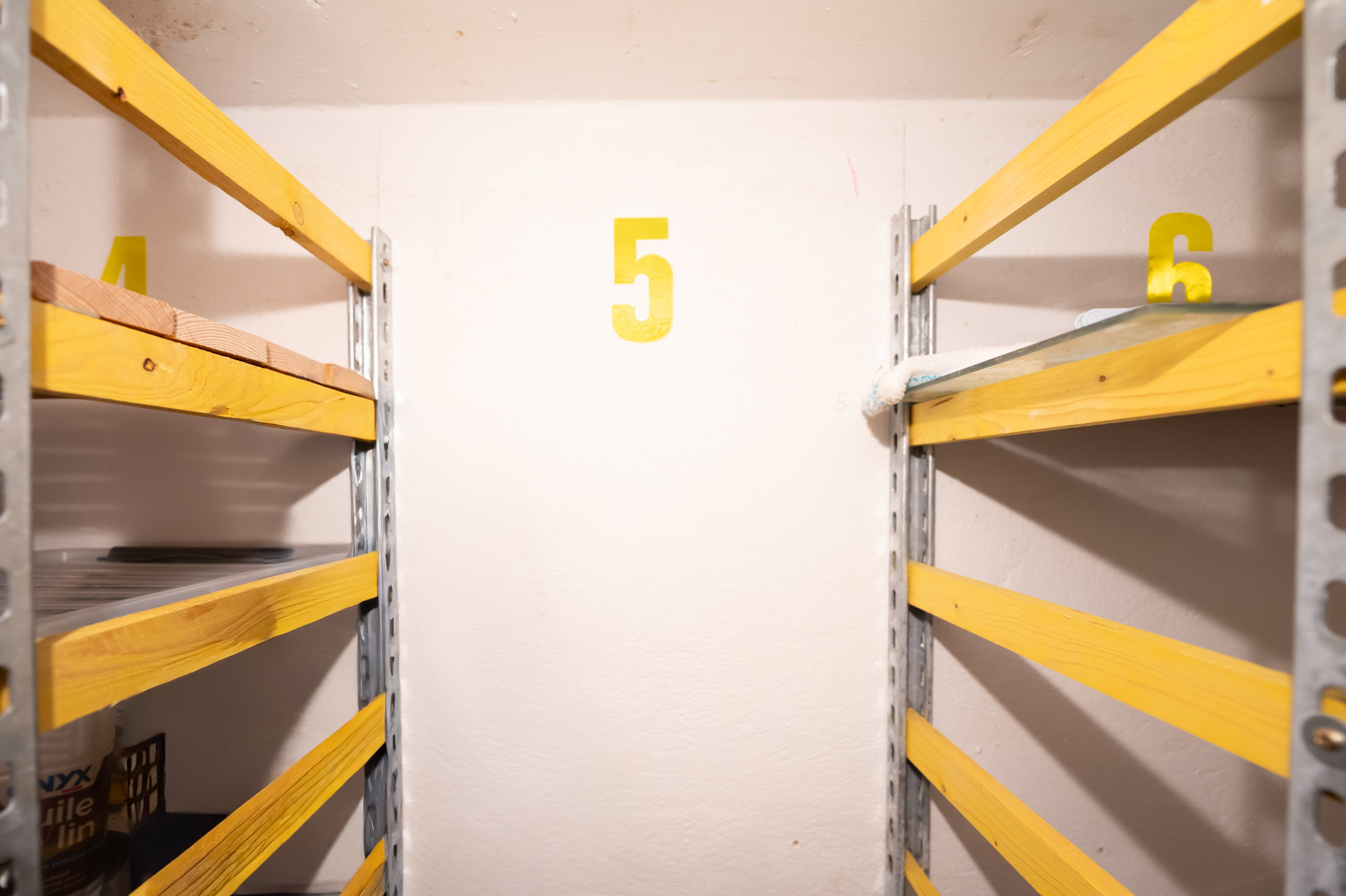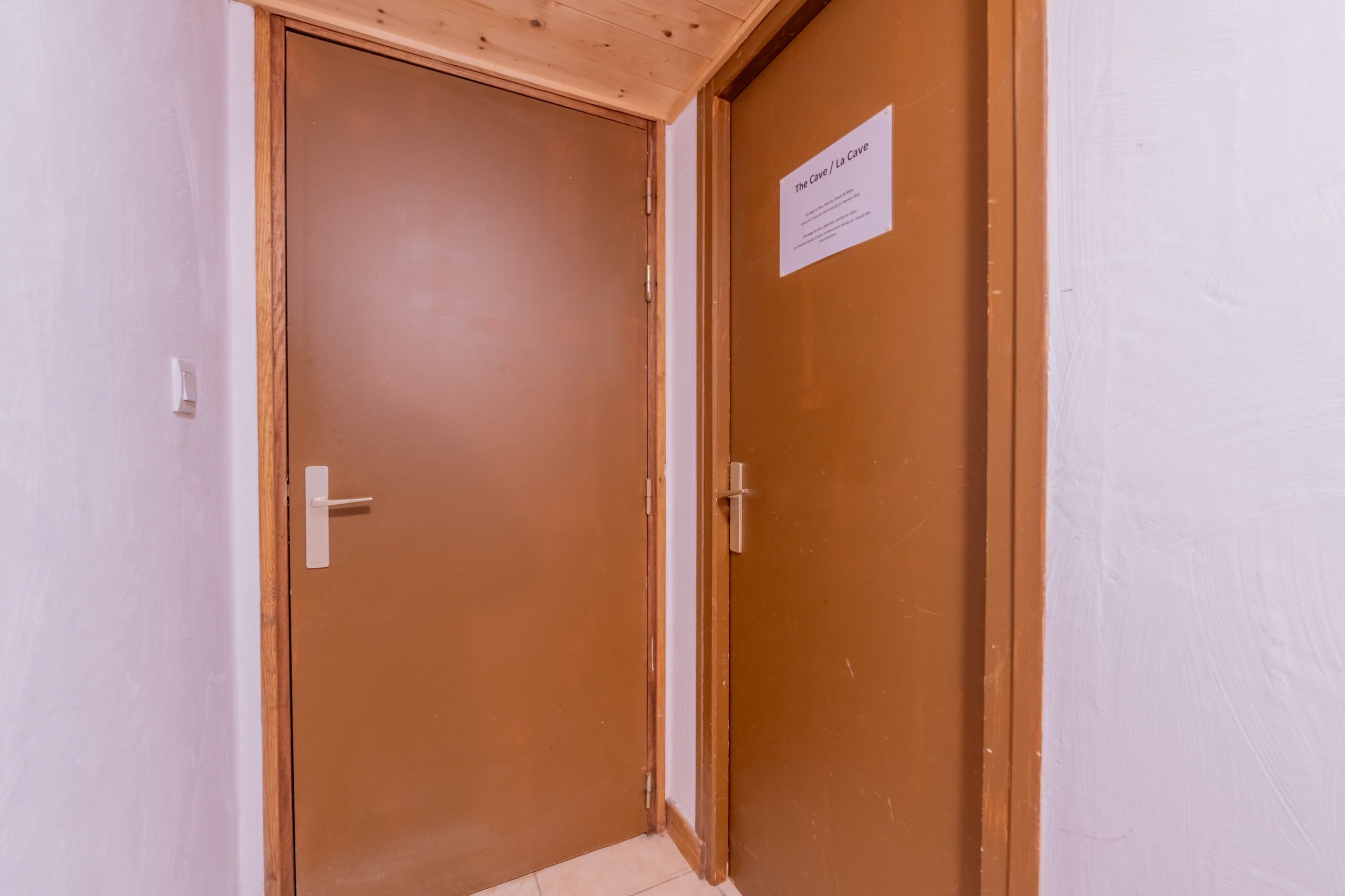 There is a cave for ski/bike storage.
